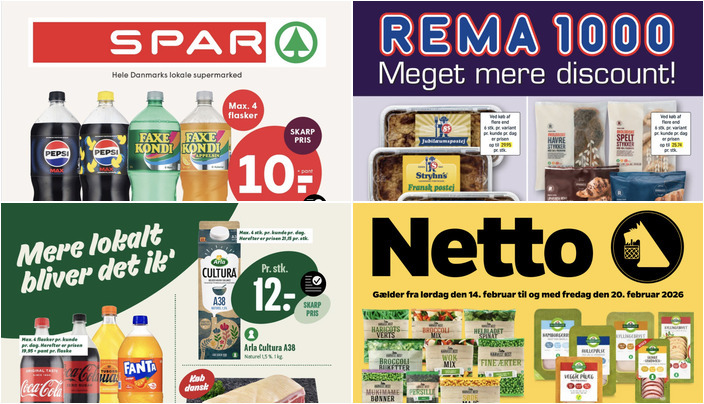 Spar tilbyder Pepsi eller Faxe Kondi i flere varianter, 1,5 liter flasker, til kun 10 kr. pr. flaske + pant. Husk, der er en begrænsning på 4 flasker pr. kunde pr. dag. Tilbuddet gælder fra fredag den 13. februar til torsdag den 19. februar 2026.